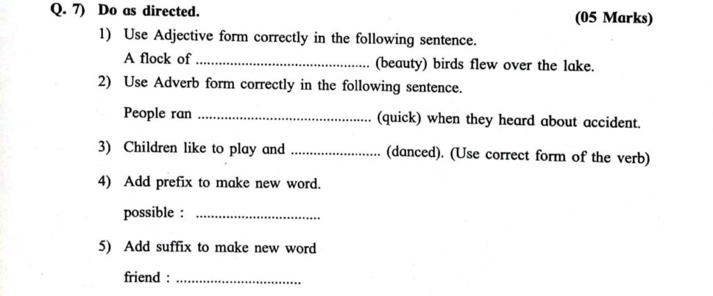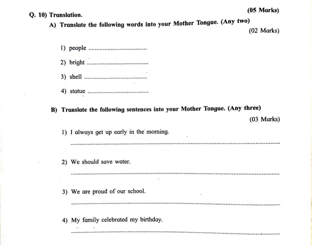 2 thoughts on “English 6th Std PAT Question Paper with Answers”